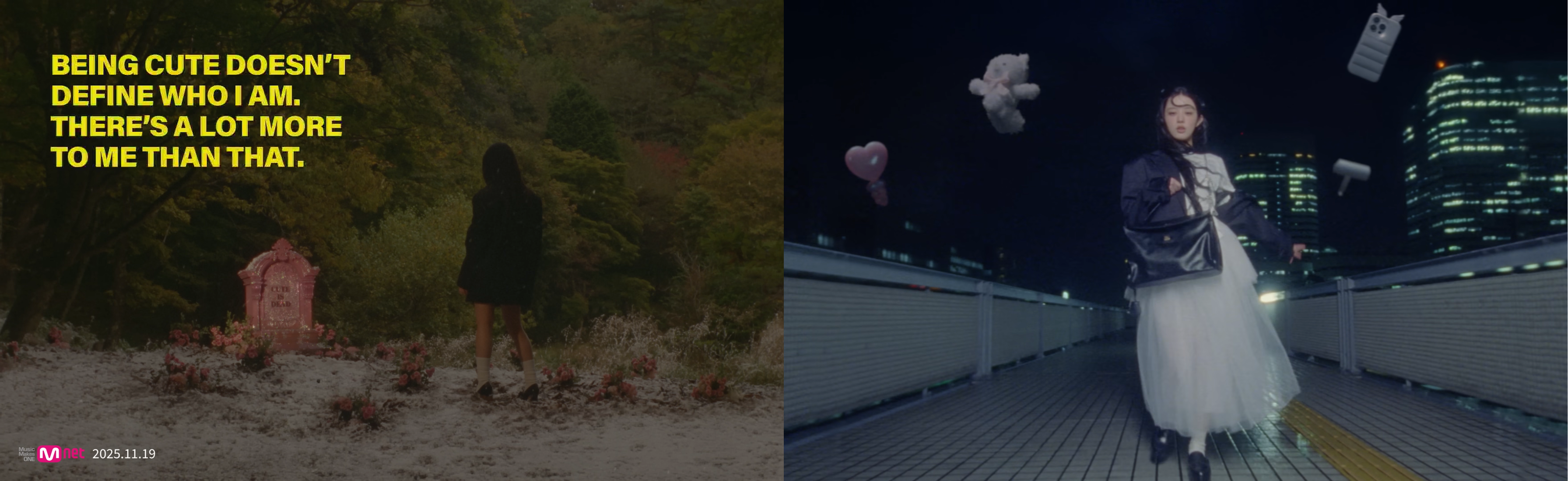 뮤직비디오 첫 장면부터 ‘CUTE IS DEAD’ 비석을 보여주며 시작하는 게 정말 인상적이었어. 게다가 귀여운 아이템들을 다 가방 밖으로 버려버리고, 수트처럼 멋있는 옷을 입고 퍼포먼스를 하는 아일릿의 모습이 멋있고 새롭더라고. 특히 후렴 첫 부분에서, 살짝 미소를 짓다가 정색하는 표정 연기가 너무 귀여워서 계속 봤다? 결국, 이번 앨범은 “우린 귀엽기만 한 애들이 아니야”라고 말하면서도, 그 말조차 귀엽게 해버리는 아일릿다운 앨범이라고 생각해.