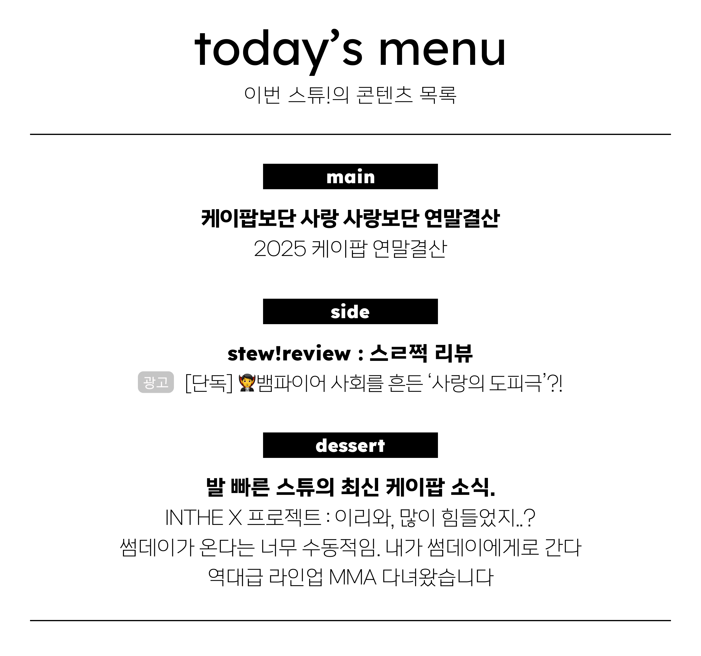 올해의 마지막 stew!를 맛보기 전에 잠깐 🙌
