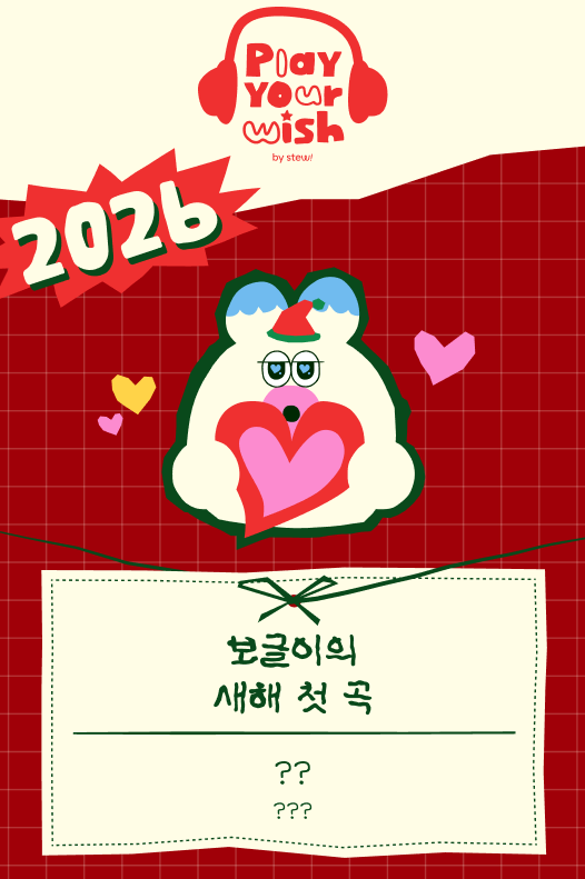 보글이들이 보내준 응답 덕분에 너무너무 재밌게 연말결산 쓸 수 있었어! 올해 돌아보면서 ‘너무 내 본진만 본 거 아냐?’ 싶었는데, 생각보다 케이팝을 꽤 열린 마음으로 보고 있었다는 것도 새삼 깨달았달까? 내일모레면 벌써 2026년이라니 진짜 믿기지 않네... 보글이들은 새해 첫 곡 정했어? 2026년 끝내주게 잘 보내고 싶다면, Play your wish!로 새해 첫 곡 정해보자! |