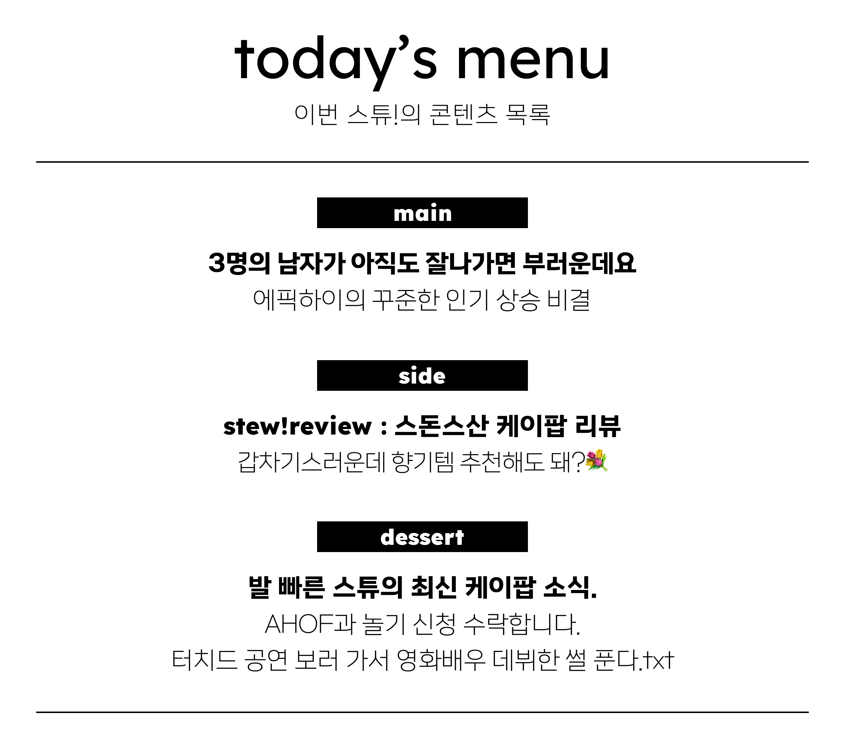 앞으로도 재미난 케이팝 이야기를 들려줄 테니 따끈따끈한 스튜를 받아보고 싶다면 아래의 구독 버튼을 눌러줘!