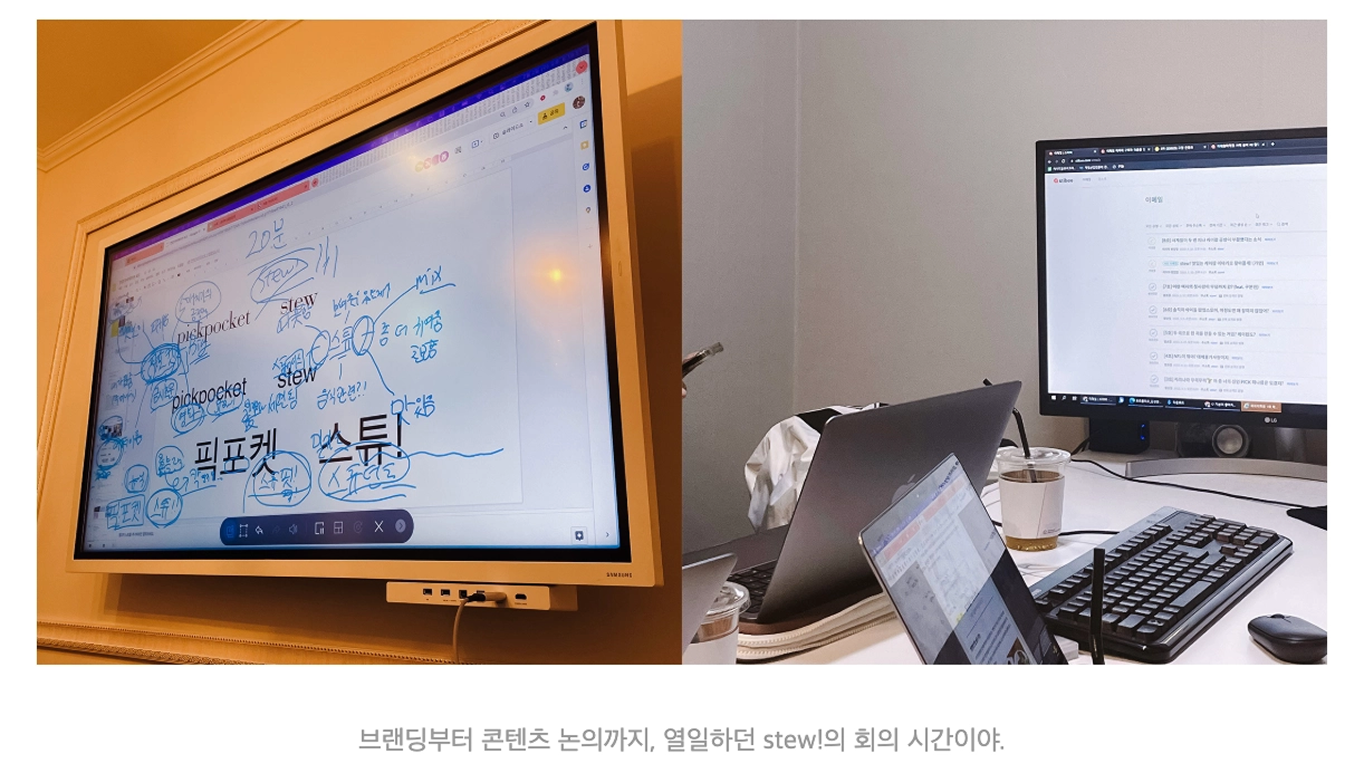 사실 스튜는 크루들이 없었으면 이렇게 긴 시간 동안 함께하지 못했을 거에요. 처음엔 일하는 방식이 서로 달라 부딪히기도 했지만, 이제는 단어 하나만 말해도 손발이 척척 맞는 게 신기하곤 해요. 정말 일 잘하는 동료들과 합을 맞출 수 있어서 행운이었던 거 같아요.🍀