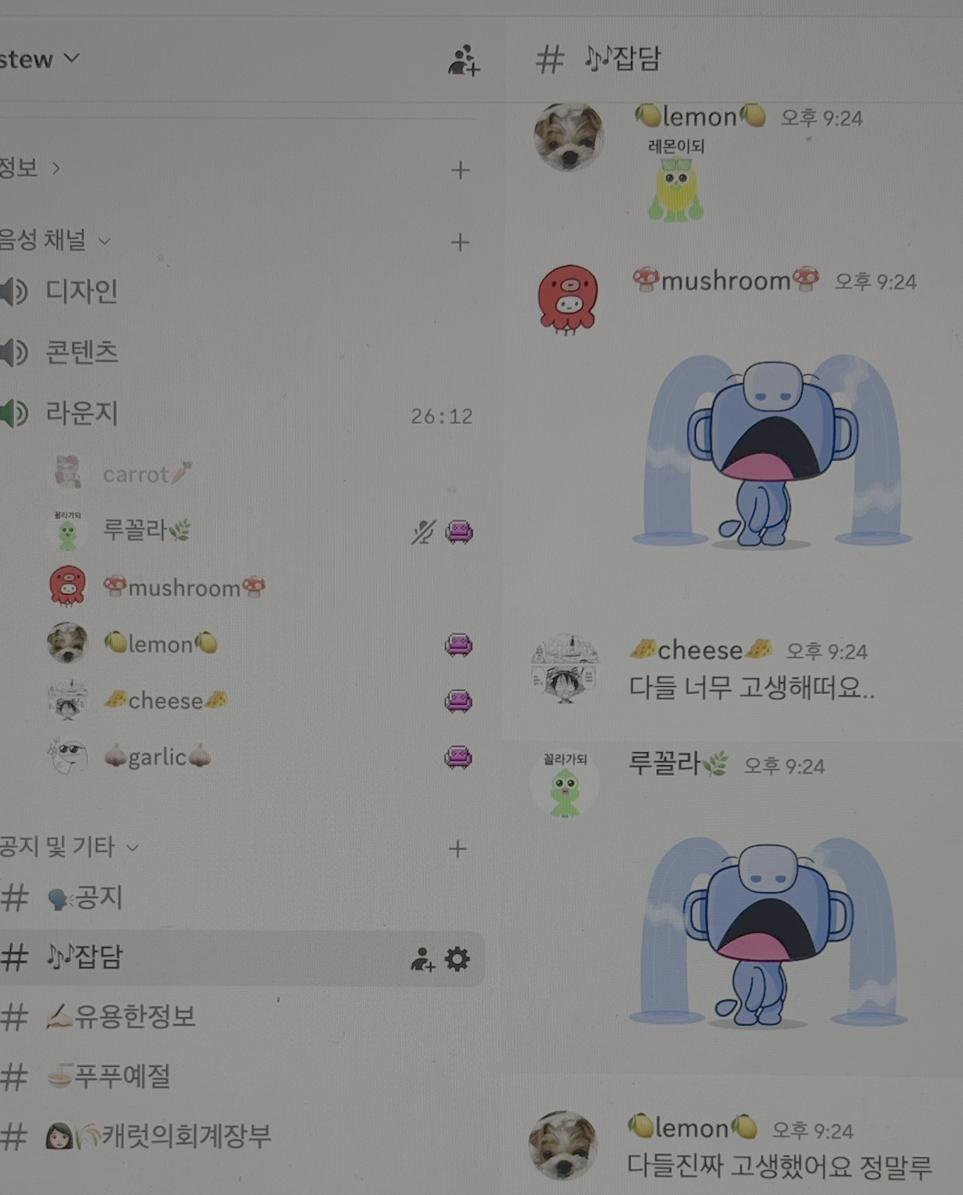 거의 매주 스튜 크루들은 이렇게 디스코드로 음성 회의를 했었어! |