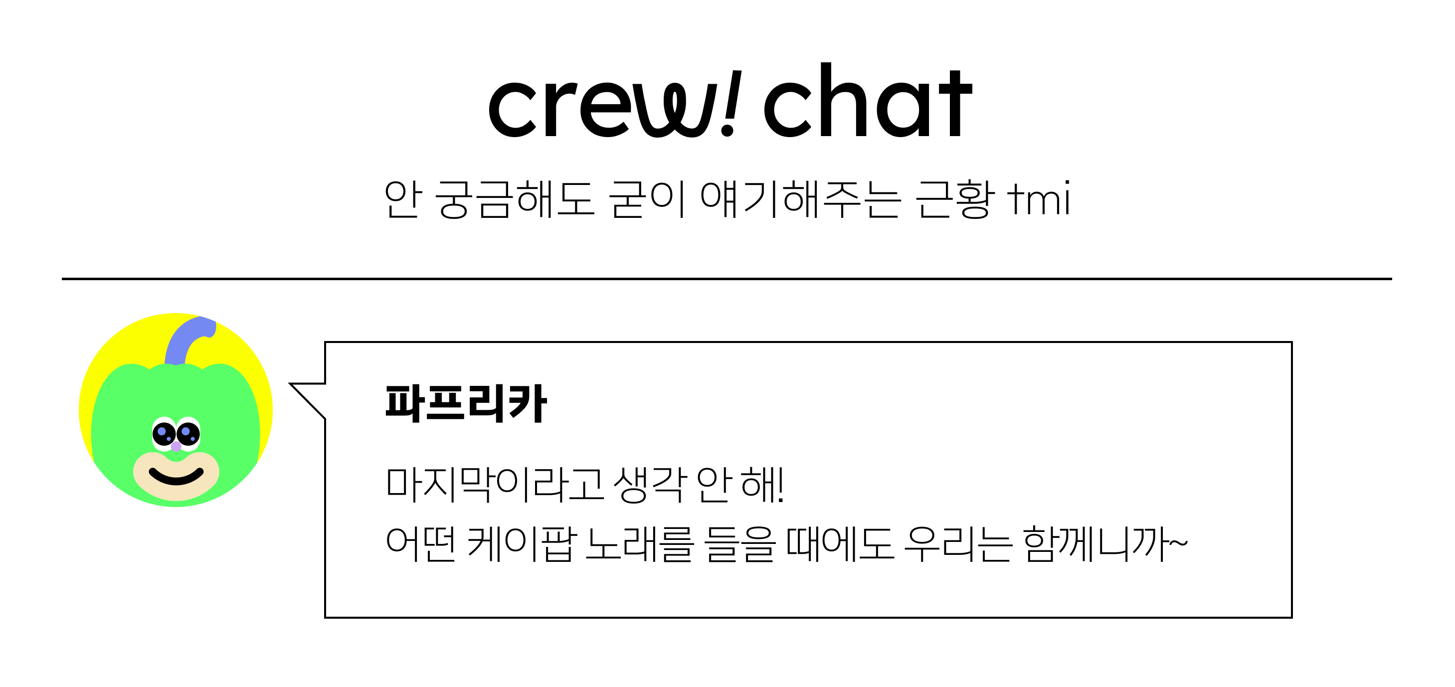 그래서, 이 시점에서 우리는 정기적인 stew! 발행을 쉬어가기로 결정했어. 그리고 마지막으로 우리 크루들 한명씩 보글이들에게 전하고 싶은 메시지를 담아봤는데... 한번 읽어줄래? (참고로 크루는 가나다순이야!) |